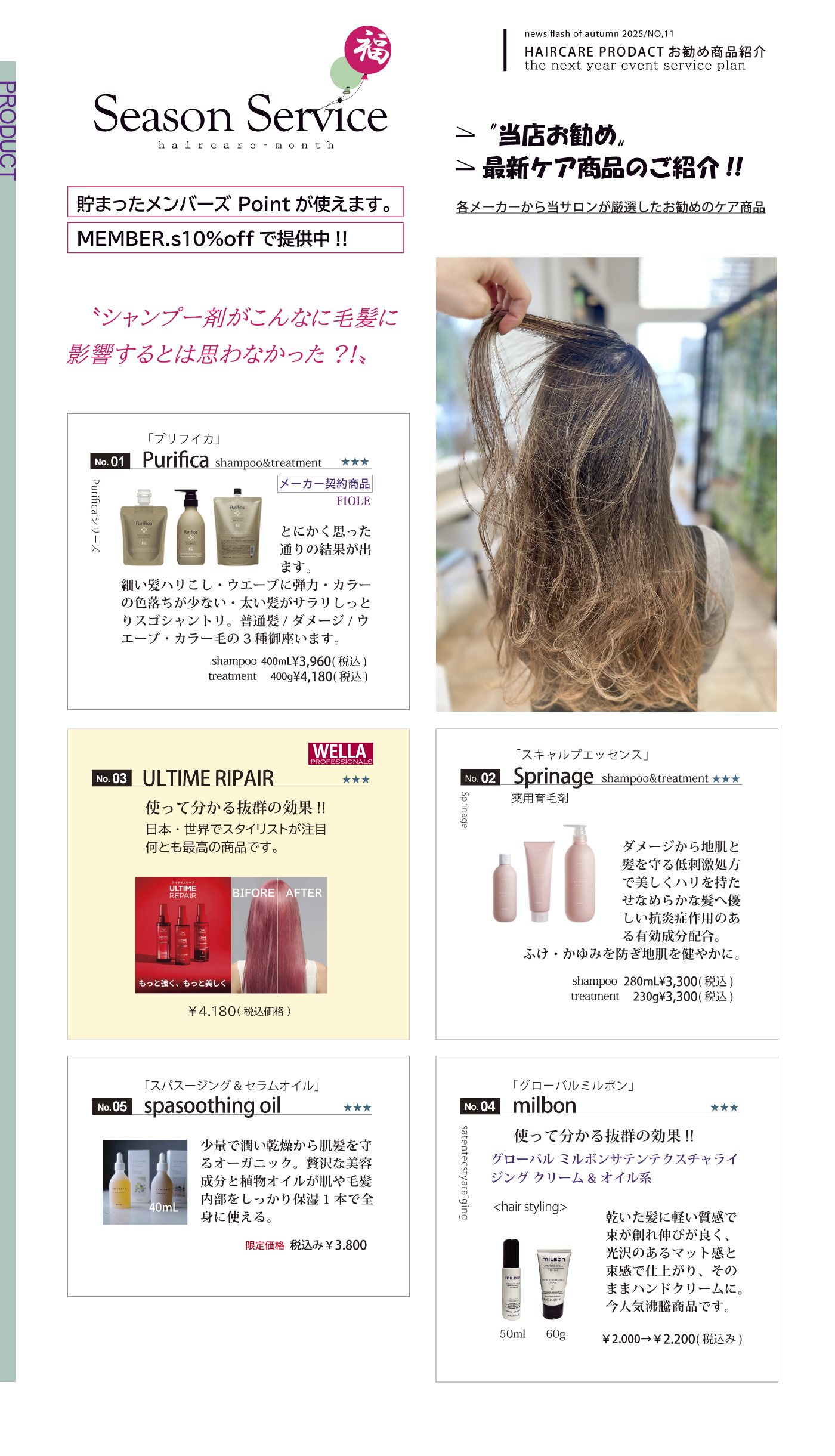 当SALONお勧めヘアケア商品→フルに10%サービス実施!!